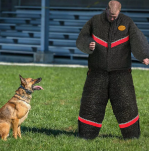 The Full Body Protection Dog Training Bite Suit is suitable for police dog training, military dog training, and general protection training and so on.