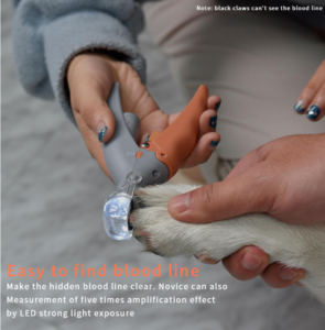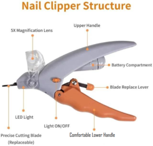 - The Illuminated Pet Nail Clipper is equipped with light source to help detect veins in nails in order to prevent injury to the pet during nail cutting. It has ergonomic design and the handle is made of non slippery material; it makes gripping easy.
